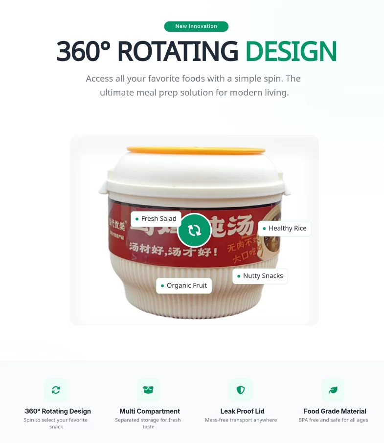 Despite the rotating mechanism, many models are designed to be stackable and compact. They maximize vertical space, allowing users to carry a full meal—including snacks and desserts—in a single, organized unit.